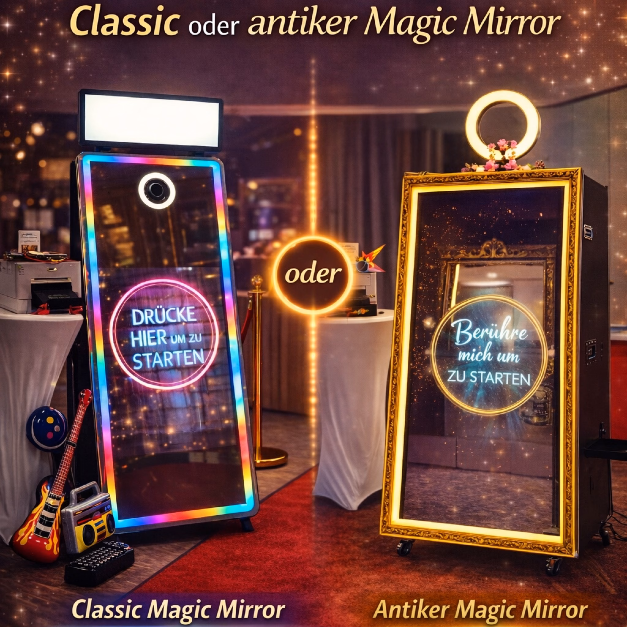 Vergiss langweilige Fotoboxen! Mach deine Party zum unvergesslichen Event mit unserem Magic Mirror. Er ist mehr als nur eine Fotobox – er ist das Entertainment-Highlight, das deine Gäste lieben werden.